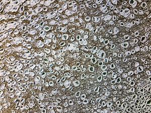 Large bubbles frozen between clumps of dirt along the Lake Michigan shoreline