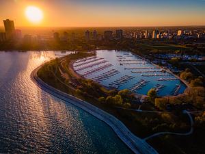 Golden sunlight bathes Lake Michigan